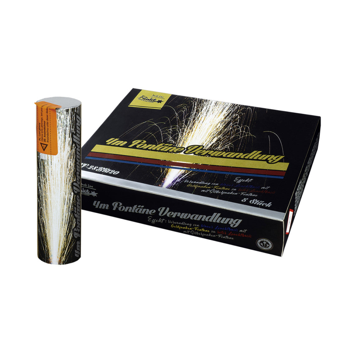 Große, raucharme Fontäne mit 30 Sekunden Brenndauer und bis zu ca. 4m Effekthöhe.