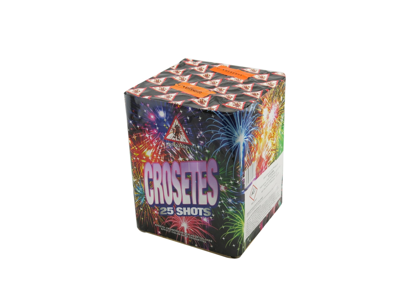 25 Schuss bunte Schweif-Crossette-Sterne. Die letzten 5 Schuss auf Schlag