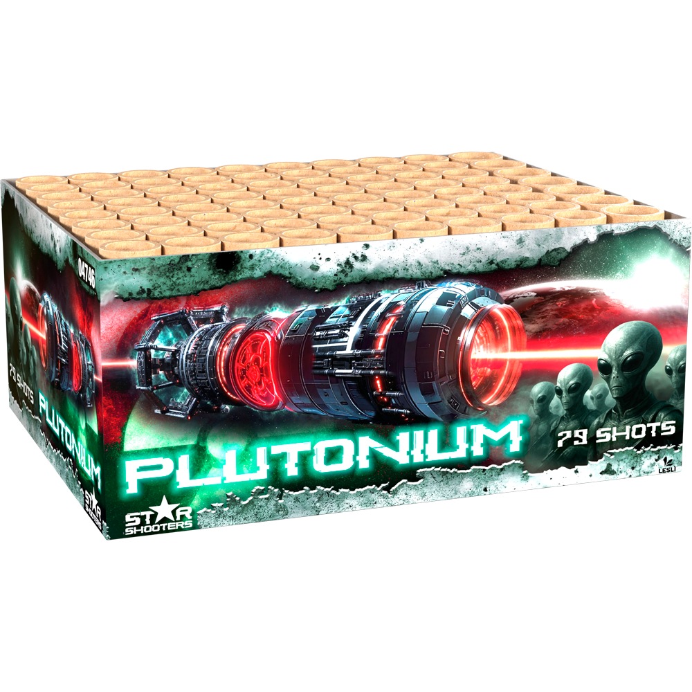 79 Schuß reine Explosion! Ein chemisches Spektakel aus goldenen Palmen, bunten Pfingstrosen und funkelnden Regenbouquets, die 68 Sekunden lang den Himmel färben. Ein Funke von „Plutonium“ erleuchtet alles!