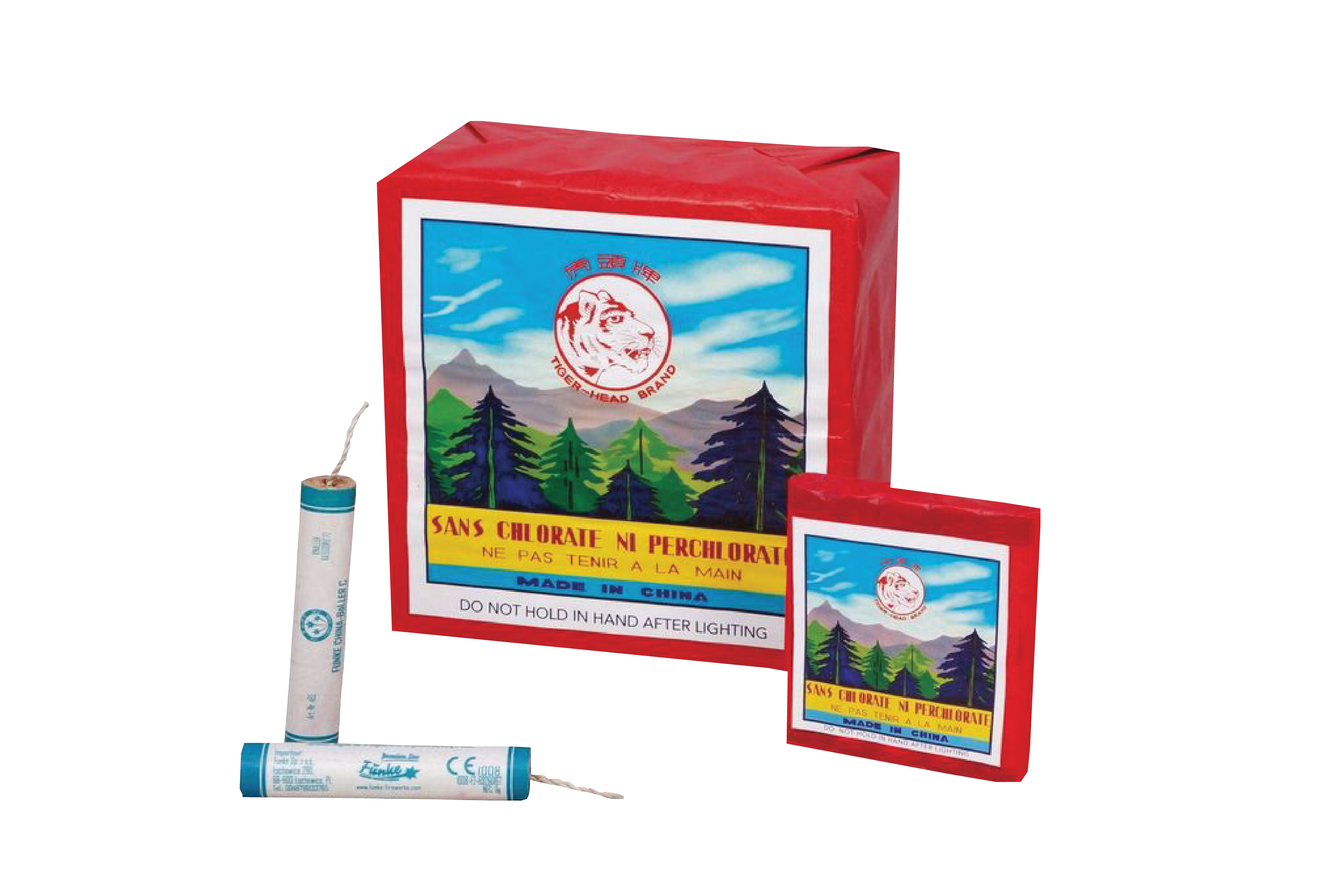 Schallerzeuger mit Schwarzpulver in traditioneller chinesischer Bauart, in der traditionellen Größe 485 ( 4“ x 3/4“). 5 Stück pro Packung, 20 Packungen pro Schinken. NEM 2,5 g pro Stück.