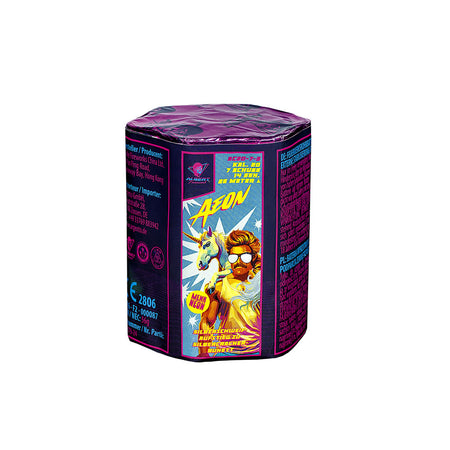100 Schuss Verbund im Kaliber 21mm mit Silberwirbel-Aufstiegen zu verschiedenfarbigen Farbsternen kombiniert mit Gold- und Blinkeffekten.