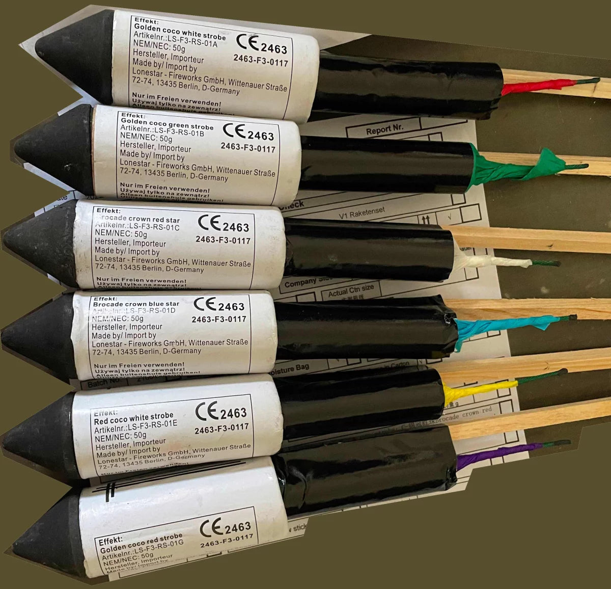 Bewährtes Raketenset (ehemals Kategorie 4) 6 Raketen im Beutel.