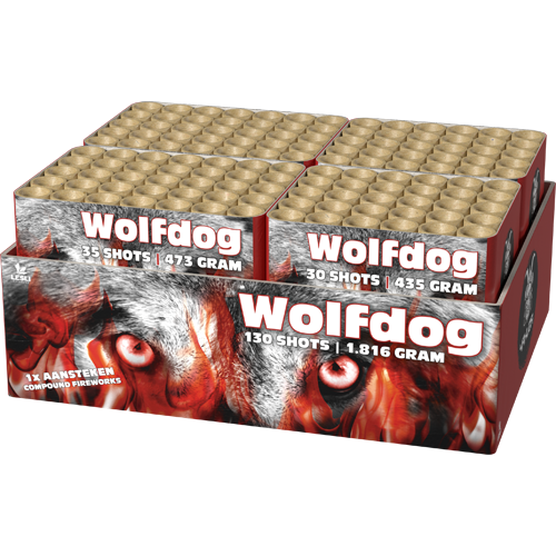 Brillianter Compound mit nicht weniger als 130 Schuss, maximal befüllt mit fast 2 kg Pulver. Bestehend aus 4 verbundenen Cakes – nur 1x anzünden.